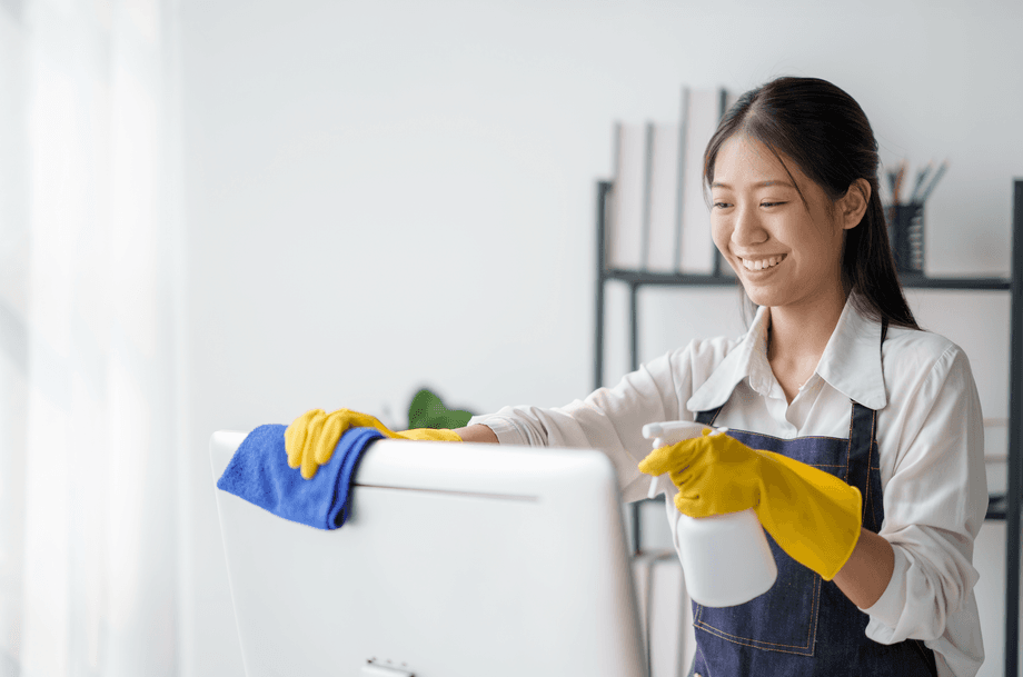 ใช้อุปกรณ์แบบมืออาชีพ เช่น เครื่องดูดฝุ่นพลังสูง ผ้าไมโครไฟเบอร์ น้ำยาปลอดภัย